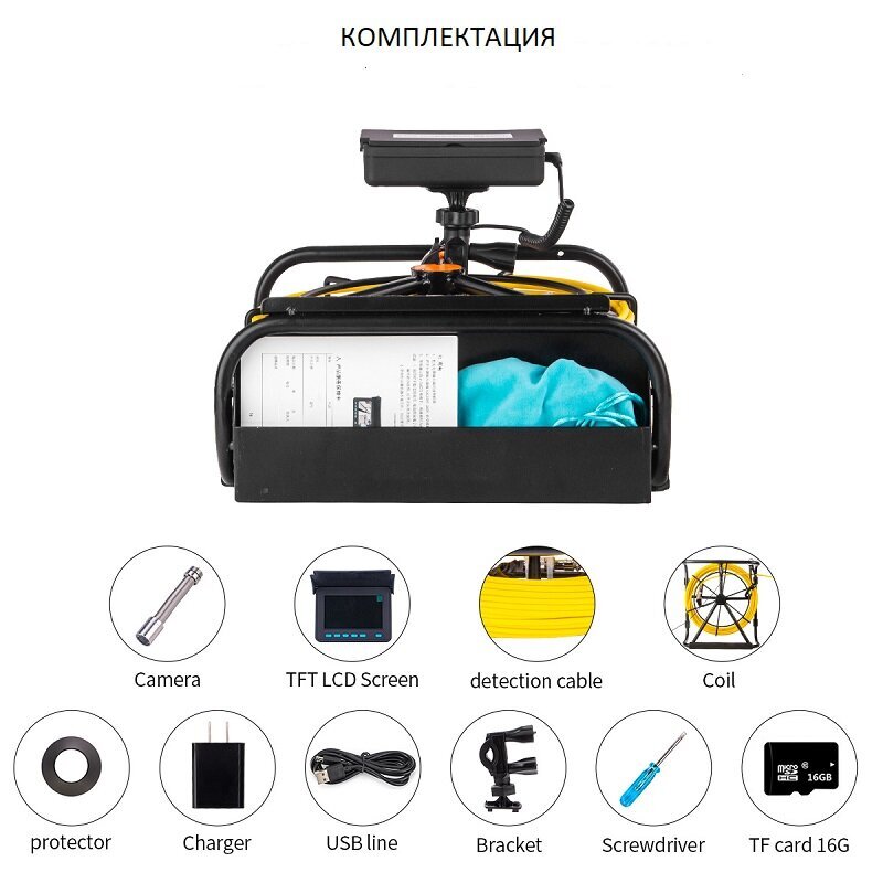 Бюджетный эндоскоп для обследования трубопроводов . Цветной дисплей размером 4,3" по диагонали. HD камера с регулируемой белой подсветкой на 20 метровом световоде.
