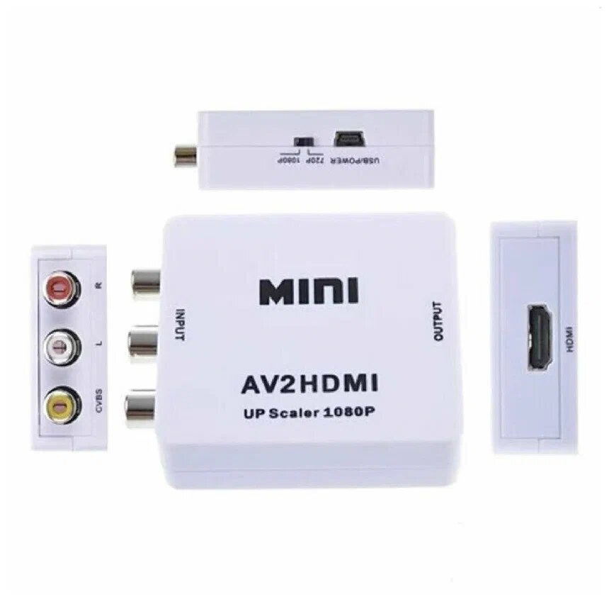 Конвертер AV - HDMI - это устройство, которое преобразует аналоговый сигнал AV (CVBS) в HDMI. Оно предназначено для преобразования сигнала от источника с "тюльпанами" на приемник через HDMI.