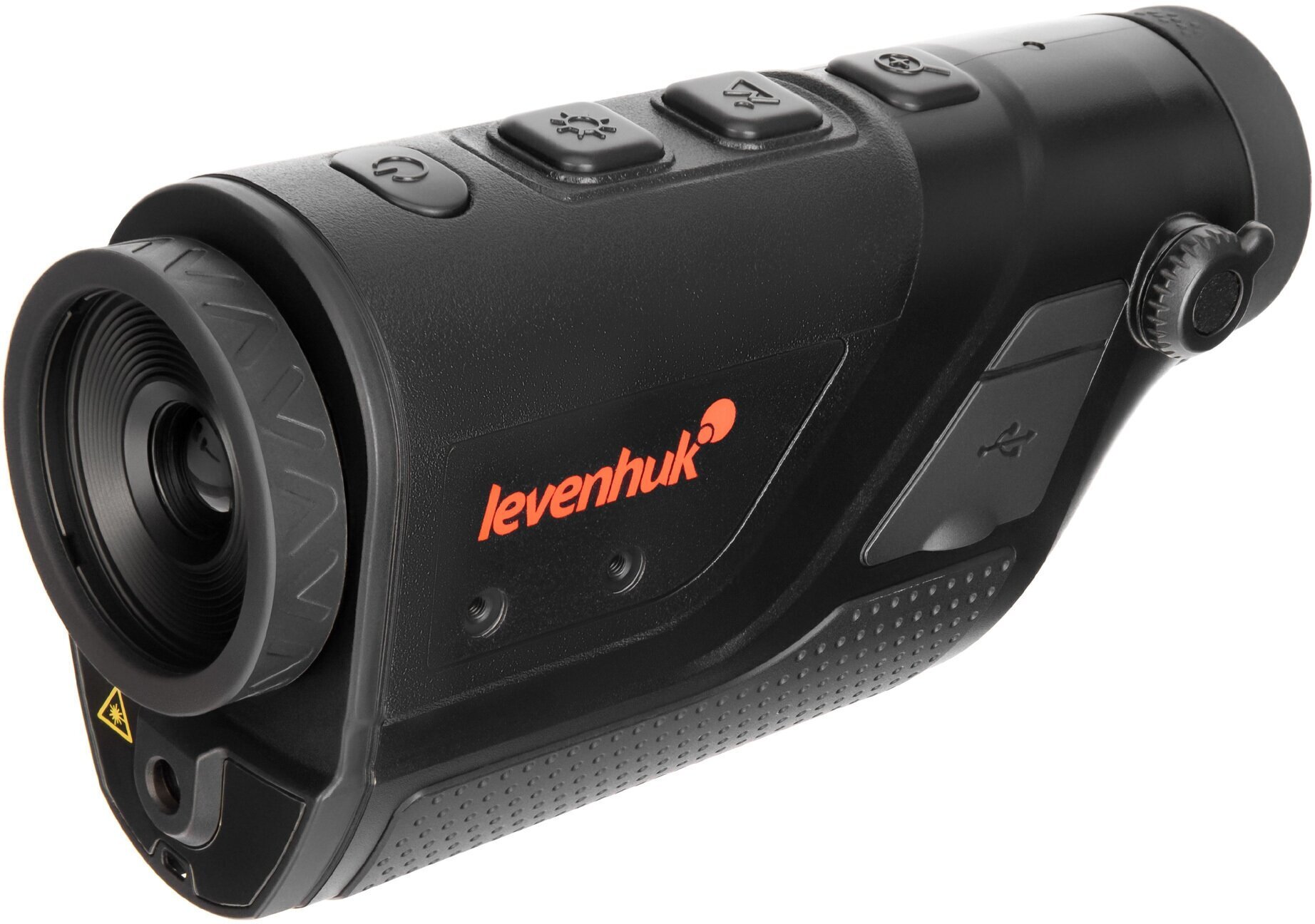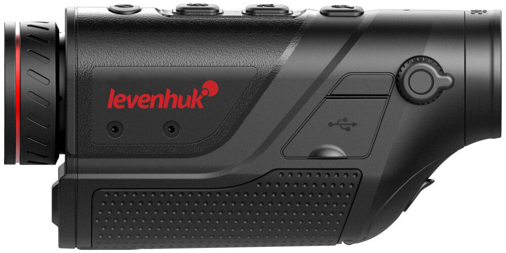 Levenhuk Fatum Z100 – это портативный тепловизионный монокуляр для отслеживания целей на расстоянии до 1000 метров. Он небольшой и легкий, имеет эргономичную форму и простое управление с быстрым доступом к основным настройкам. Отлично подходит для выслеживания дичи, выполнения тактических задач на местности, спортивного ориентирования, походов, охранных мероприятий и любой другой деятельности, связанной с наблюдением в полевых условиях. В основе прибора лежит микроболометрическая матрица с разрешением 256х192 пикселей. Общее увеличение складывается из оптического и цифрового и меняется дискретно. Доступно два уровня: 1,5 и 3 крата. Для более комфортной работы в разных условиях есть возможность выбрать цветовую палитру – всего доступно 5 видов палитр. Для подсветки цели можно использовать лазерный целеуказатель, он может работать с объектами на расстоянии до 200 метров. Есть функция отслеживания горячих точек. Оптико-электронная начинка помещена в герметичный корпус, который выдерживает даже сильный дождь. Благодаря классу защиты IP66 тепловизор можно использовать в любую непогоду и в самых суровых условиях. Конструкция корпуса также поддерживает установку на штатив – здесь есть резьба 1/4 дюйма. В качестве источника питания используется аккумулятор типа 18650 – на одном заряде Levenhuk Fatum Z100 может работать до 8 часов. Предусмотрен энергосберегающий режим, есть настраиваемое автоотключение – эти функции позволяют более экономно расходовать питание. Еще одна полезная функция – возможность удаленного сопряжения со смартфоном через Wi-Fi. Тепловизор может работать в паре с мобильным приложением TrackIR, которое умеет принимать картинку в реальном времени и работать как рекордер, сохраняя фото и видео в память смартфона. Приложение также можно использовать для измерений расстояний (как дальномер) и удаленного управления тепловизором. Доступно еще два типа сопряжения с внешними устройствами: по протоколу Bluetooth и через кабель (разъем Type-C).