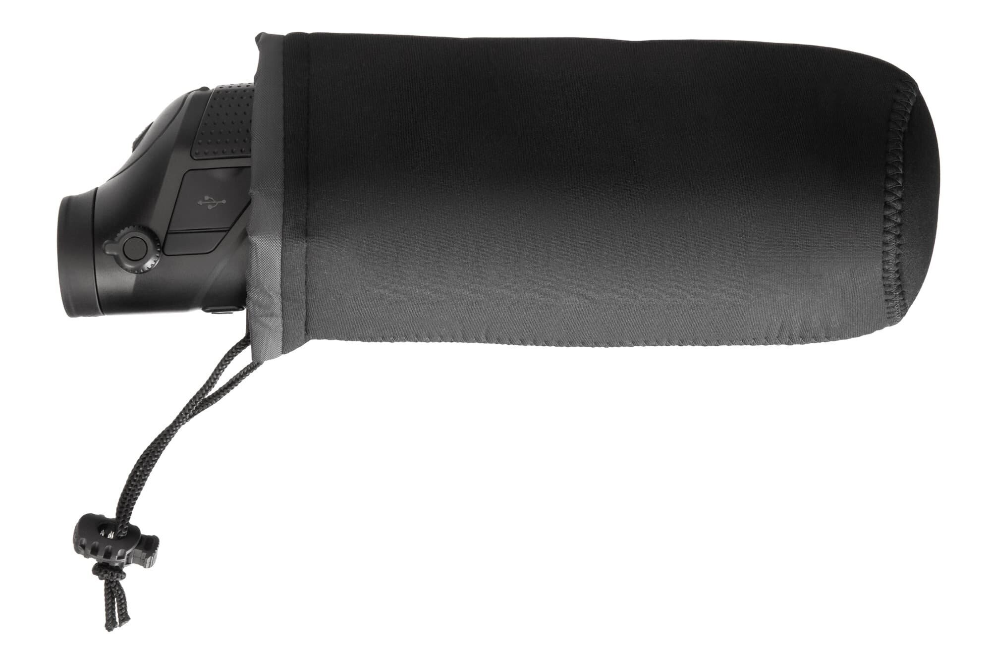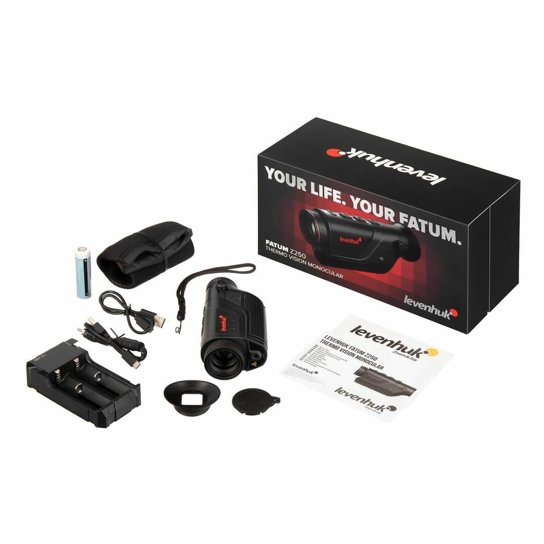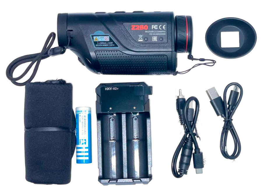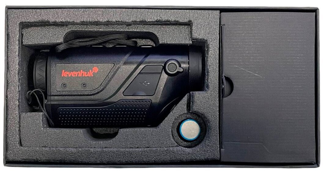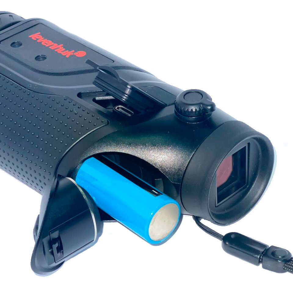 Водозащищенный. Оптическое увеличение: 2,4 крата. Цифровое увеличение: 1/2/4 крата. Максимальная дальность обнаружения: 2400 метров. Встроенные модули Wi-Fi и Bluetooth Тепловизионный монокуляр Levenhuk Fatum Z250 отлично послужит охотнику, сотруднику охраны, егерю, спортсмену и многим другим, кому требуется оптико-цифровой прибор для наблюдений на открытых пространствах. Этот тепловизор позволяет вести слежение за горячими точками и может обнаружить крупную цель на дистанции до 2400 метров, а мелкую – на расстоянии до 620 метров. Прибор прост в обращении, водозащищен, имеет расширенный функционал благодаря возможности работать с мобильным приложением TrackIR. Разрешение микроболометра составляет 400x300 пикселей, есть возможность выбирать цветовую палитру во время наблюдений – менять профиль можно прямо «на ходу» нажатием на одну кнопку. Всего доступно 5 палитр. Монокуляр дает фиксированное оптическое увеличение в 2,4 крата, которое можно усилить цифровым зумом вплоть до уровня в 9,6 крата. Изменение кратности происходит дискретно, доступно три уровня. Тепловизор дополнен лазерным целеуказателем, который упрощает наведение на цель. Им можно «подсветить» объект, находящийся на расстоянии до 200 метров. Благодаря классу защиты IP66 прибор спокойно выдерживает непогоду, в том числе и сильный дождь, и метель. При необходимости тепловизор можно установить на штатив – в корпусе присутствует стандартное крепление 1/4 дюйма. А емкий аккумулятор обеспечивает до 7 часов работы без подзарядки, поэтому Levenhuk Fatum Z250 прекрасно подходит для продолжительных вылазок на природу. Тепловизор оборудован модулем Wi-Fi. Он используется для установления связи со смартфоном и совместной работы с мобильным приложением TrackIR. Это приложение позволяет настраивать прибор, выводить с него изображение на экран смартфона, и, что более важно, делать фотографии, записывать видео и проводить измерения расстояний до целей. То есть приложение дополняет тепловизор двумя очень полезными функциями: рекордером и дальномером. Также прибор может взаимодействовать с дополнительным оборудованием по протоколу Bluetooth и через кабель Type-C. Основные особенности: Три дискретных увеличения, матрица с разрешением 400x300 пикселей Крупные цели можно обнаруживать на расстоянии до 2400 метров Лазерный целеуказатель, 5 цветных палитр, отслеживание горячих точек Модули Wi-Fi и Bluetooth, проводное подключение по стандарту Type-C Поддержка мобильного приложения TrackIR, которое имеет функции рекордера и дальномера Корпус с водозащитой класса IP66, штативное крепление 1/4 дюйма Питание от аккумулятора, время работы составляет до 7 часов Комплектация: Тепловизионный монокуляр Кабель microUSB Видеокабель Чехол Ремешок на руку Аккумулятор Зарядное устройство Защитная крышка объектива Инструкция по эксплуатации и гарантийный талон