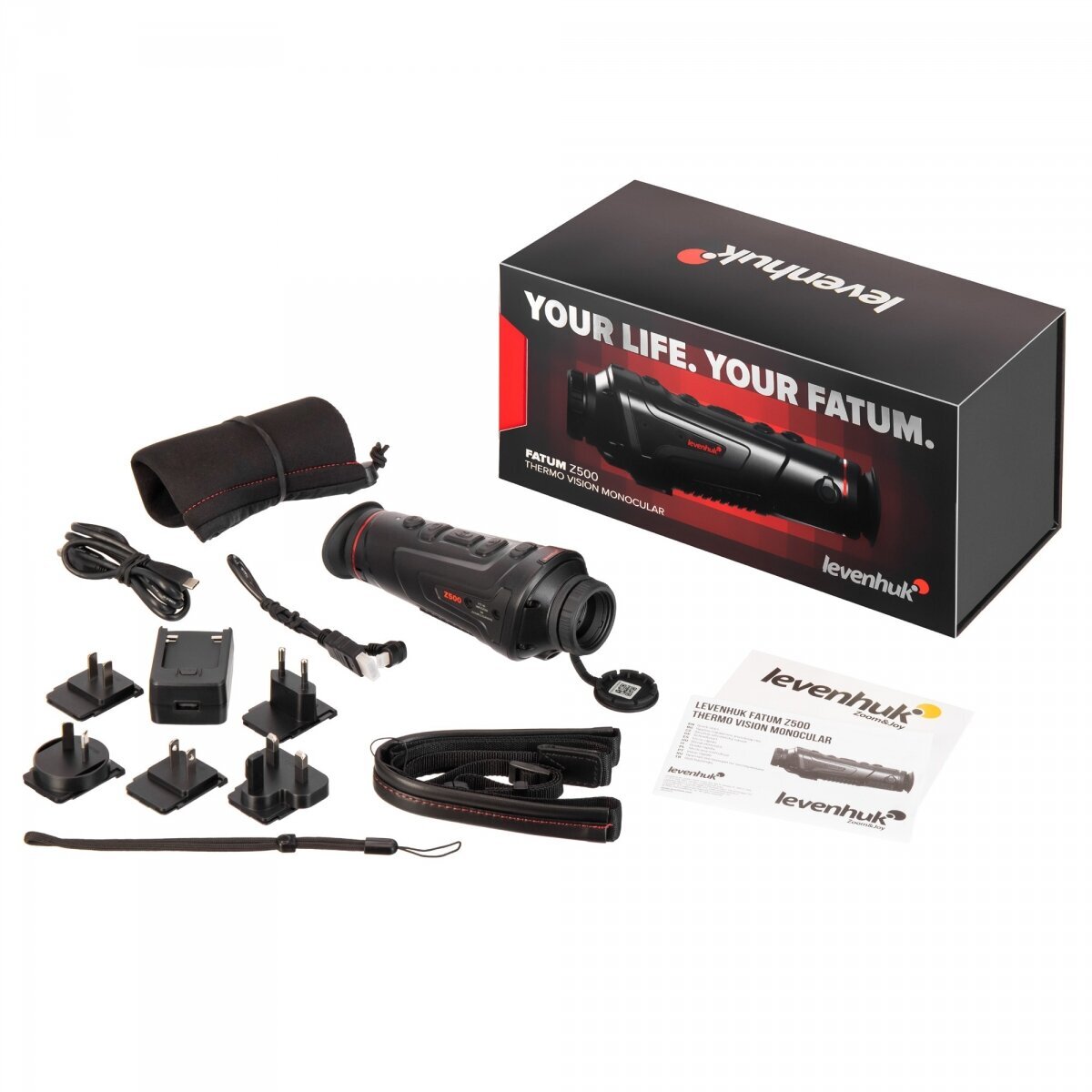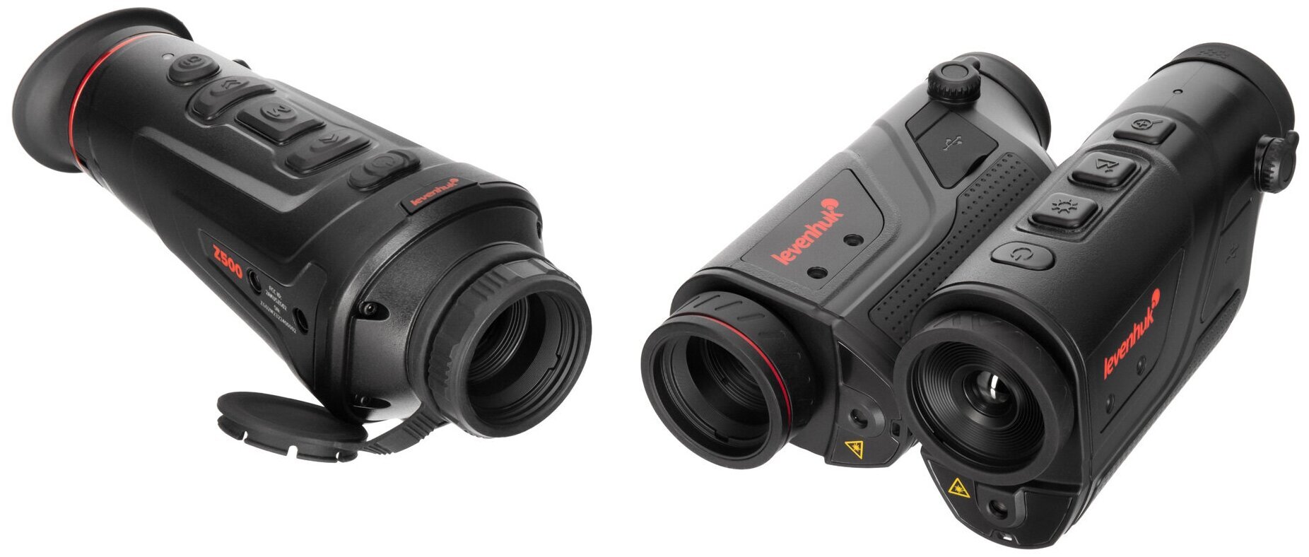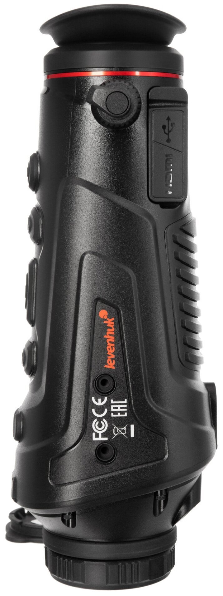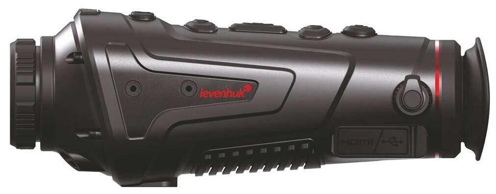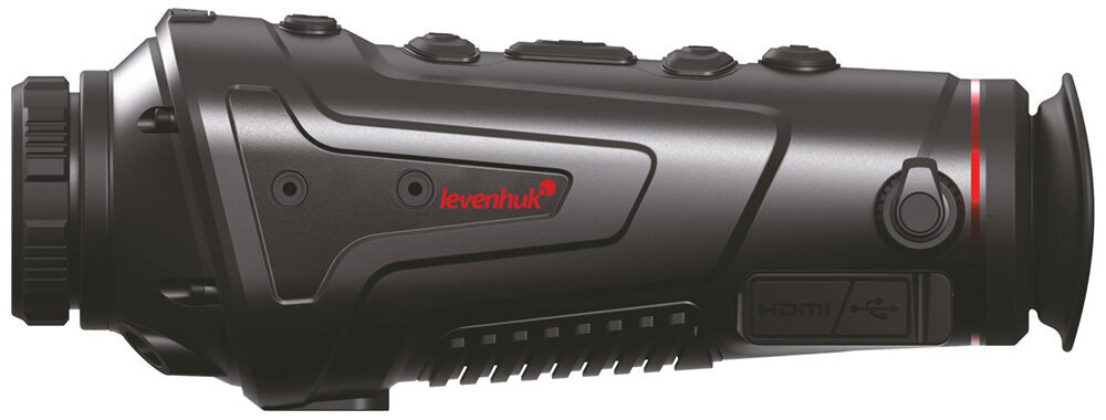 Levenhuk Fatum Z500 – тепловизионный монокуляр с дальностью обнаружения до 1700 метров. Оснащен рекордером, дальномером и модулями Wi-Fi и Bluetooth для подключения к внешним устройствам. Неприхотлив и не боится непогоды благодаря корпусу с классом водозащиты IP66. Тепловизор отлично подойдет для ночной охоты, разведывательных и поисковых операций, спортивного ориентирования и походов – любой деятельности, где важен быстрый и точный температурный мониторинг. Внутри установлена микроболометрическая матрица с разрешением 400x300 пикселей. Увеличение можно изменять плавно в диапазоне от 1,7 до 6,8 крата. Чтобы лучше различать цели в разных условиях, доступен выбор цветовой палитры. Всего прибор имеет 6 цветовых профилей, также отметим наличие функции отслеживания горячих точек. Тепловизор отлично подходит для наблюдений на средних и больших дистанциях, максимальная дальность обнаружения составляет 1700 метров – именно на таком удалении можно заметить объект размером с автомобиль. Более мелкие цели, вроде кабана или оленя, можно отследить на расстоянии в 450–590 метров. Для более точного наведения на дистанции до 200 метров можно воспользоваться лазерным целеуказателем. Источник питания – несъемные аккумуляторы, ресурса которых хватает на 5 часов непрерывной работы. Предусмотрен режим энергосбережения, есть функция автоотключения – все это помогает экономить заряд для более длительной работы прибора. Корпус имеет защиту от проникновения воды класса IP66, поэтому тепловизор можно использовать в дождливую погоду и вблизи водоемов. При необходимости прибор можно ставить на стандартный штатив 1/4 дюйма. Тепловизор оборудован встроенным рекордером, который позволяет делать фотоснимки и записывать видео, – они сохраняются в память устройства, для хранения материалов доступно 16 ГБ. Также здесь есть дальномер, позволяющий оценивать расстояние до целей. Встроенные модули Wi-Fi и Bluetooth дают возможность устанавливать связь с внешними устройствами. Например, можно настроить совместную работу со смартфоном – мобильное приложение TrackIR позволит удаленно управлять тепловизором, работать с фотографиями и видеозаписями, выводить изображение на экран смартфона. Есть и несколько вариантов проводного подключения к дополнительному оборудованию – через порты Type-C и HDMI.