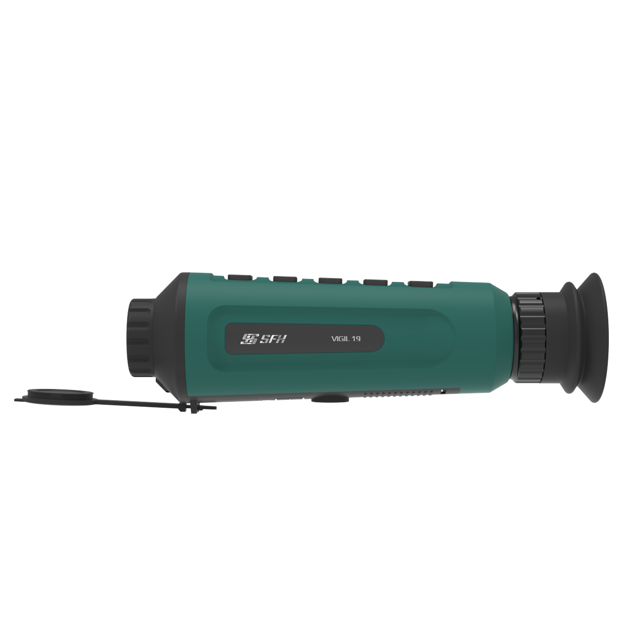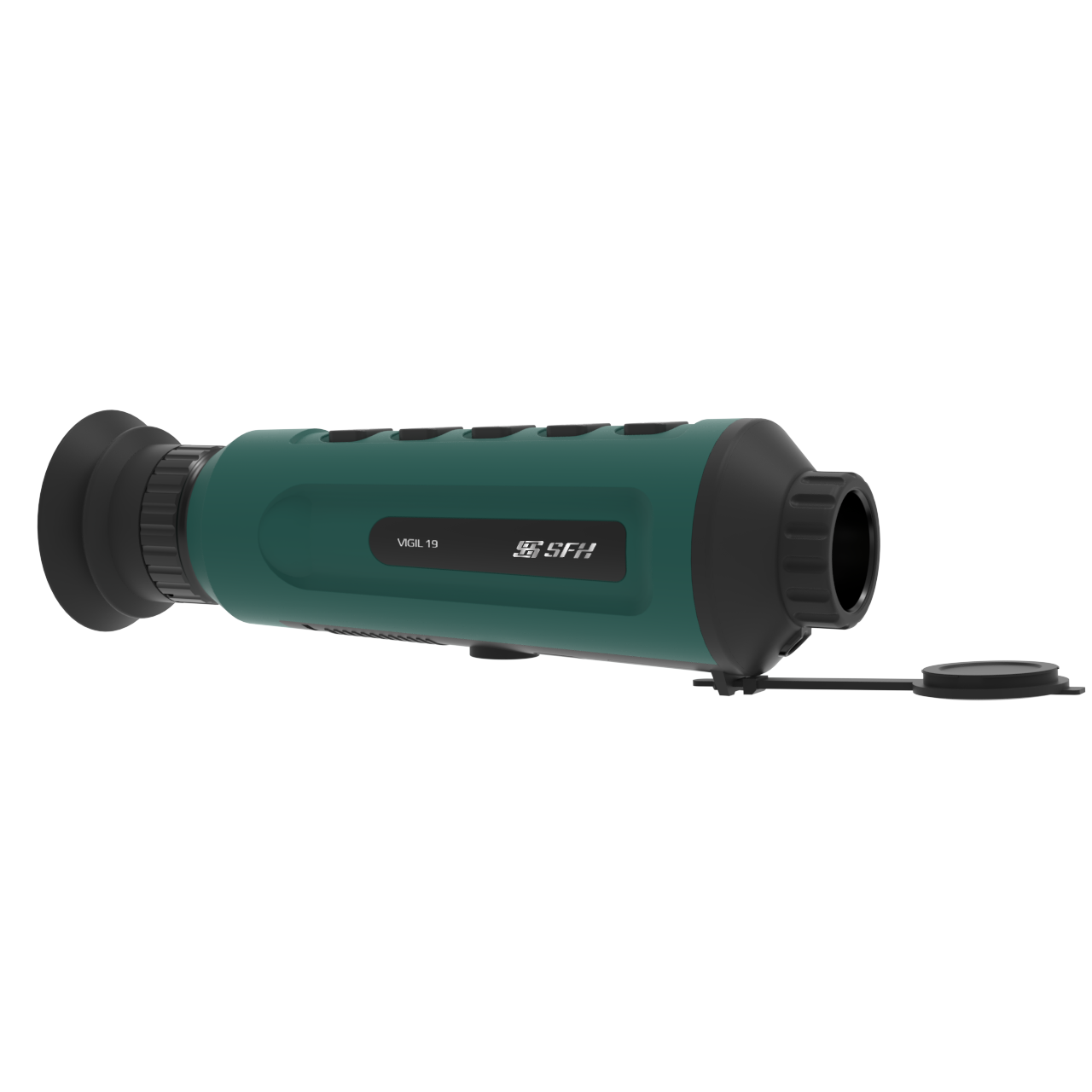 SFH VIGIL 19 — тепловизионный монокуляр для охоты и ночного наблюдения с высокочувствительной 12-микронной Vox матрицей <25 мК и 19-миллиметровым германиевым объективом. Интегрированный в окуляр OLED дисплей 0,39 дюймов с разрешением 1024х768px отличается высокой детализацией объектов, а возможность выбора цветовой палитры позволяет настроить тепловизионный спектр под конкретные условия наблюдения и особенности восприятия пользователя.