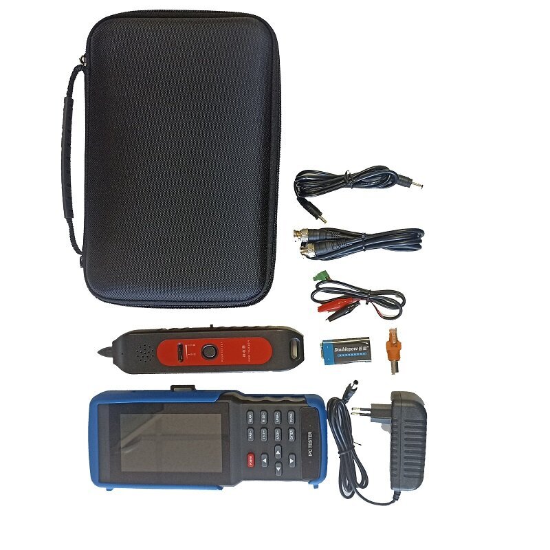 Тестер оснащен функцией Wi-Fi для подключения к сети и проверки беспроводных Wi-Fi камер. Встроенный звуковой генератор и щуп позволяют найти трассу кабельной линии, проверить UTP кабель на правильность соединения, целостность и расстояние до места повреждения. Тестер может питать камеры напряжением 12 вольт и через POE.