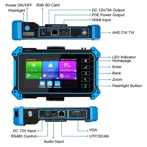 Тестер систем видеонаблюдения всех самых распространённых форматов ( кроме SDI) c цветным контрастным 5" дисплеем и креплением на руку для удобства использования.
