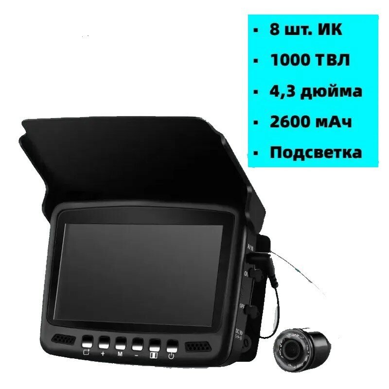 Камера высокого разрешения на 15 метровом кабеле оснащена 8 диодами инфракрасной подсветки, что позволяет наблюдать за рыбой без отпугивания. Объектив с углом обзора 92 градусов и диаметром 22 мм обеспечивает видимость от 1 до 5 метров.